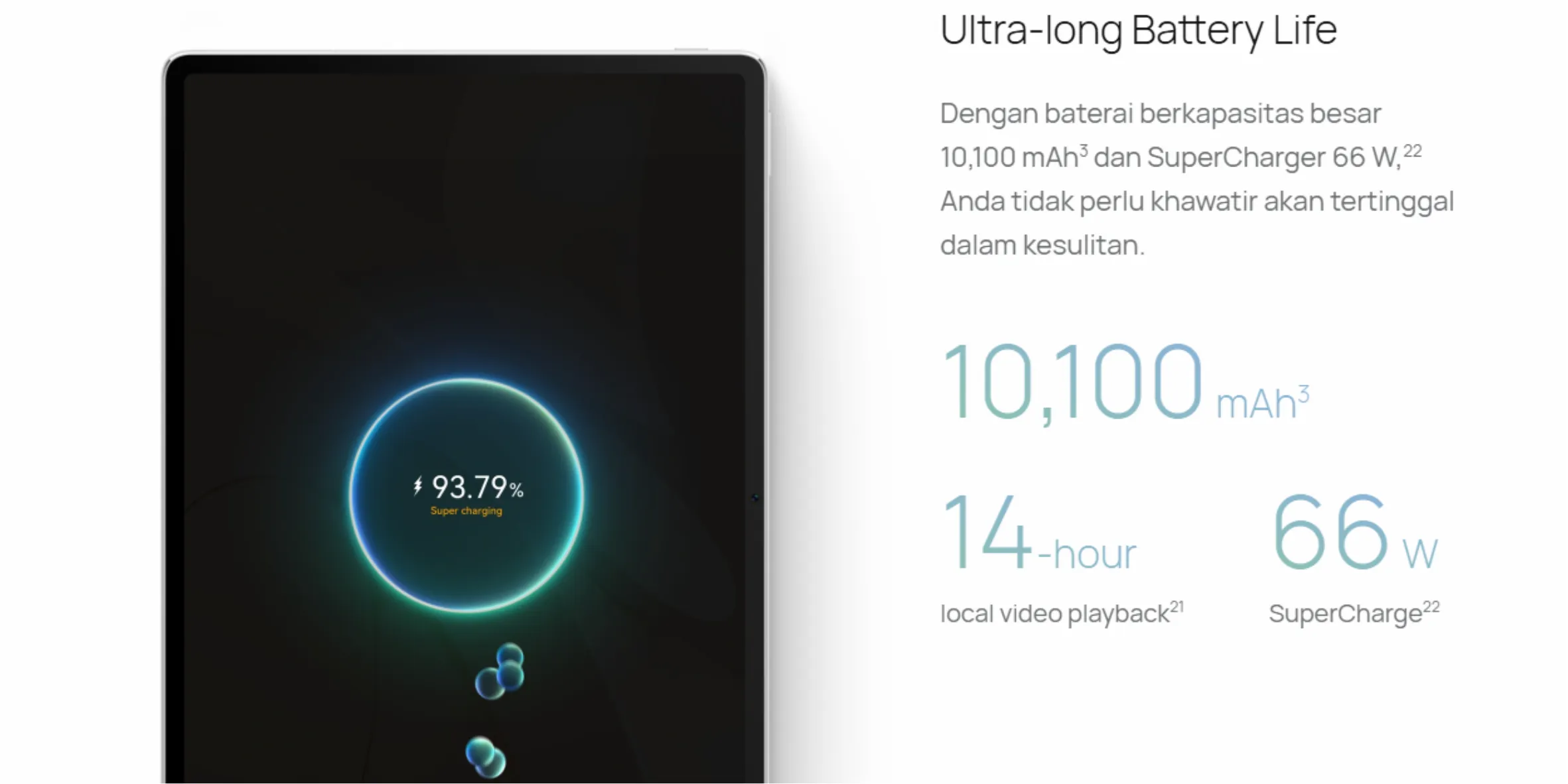 Dengan baterai berkapasitas besar 10,100 mAh dan dukungan SuperCharge 66 W, Anda tidak perlu khawatir kehabisan daya. Nikmati hingga 14 jam pemutaran video lokal, memastikan produktivitas dan hiburan Anda tidak terhenti. Tetap terhubung dan berkreasi sepanjang hari.
