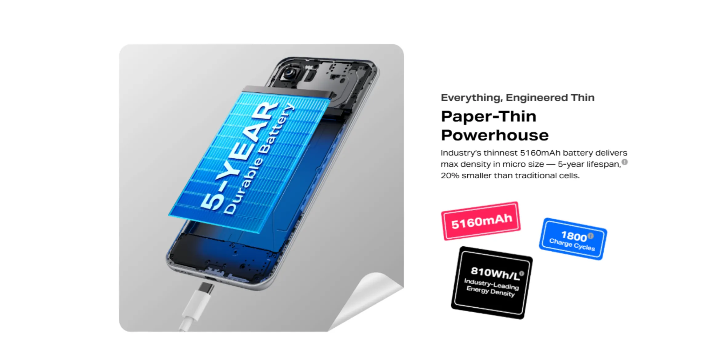 Gunakan smartphone seharian penuh tanpa khawatir kehabisan daya berkat baterai 5.160mAh. Isi ulang cepat dengan fast charging 45W, dan nikmati fitur reverse charging 10W untuk berbagi daya ke perangkat lain.