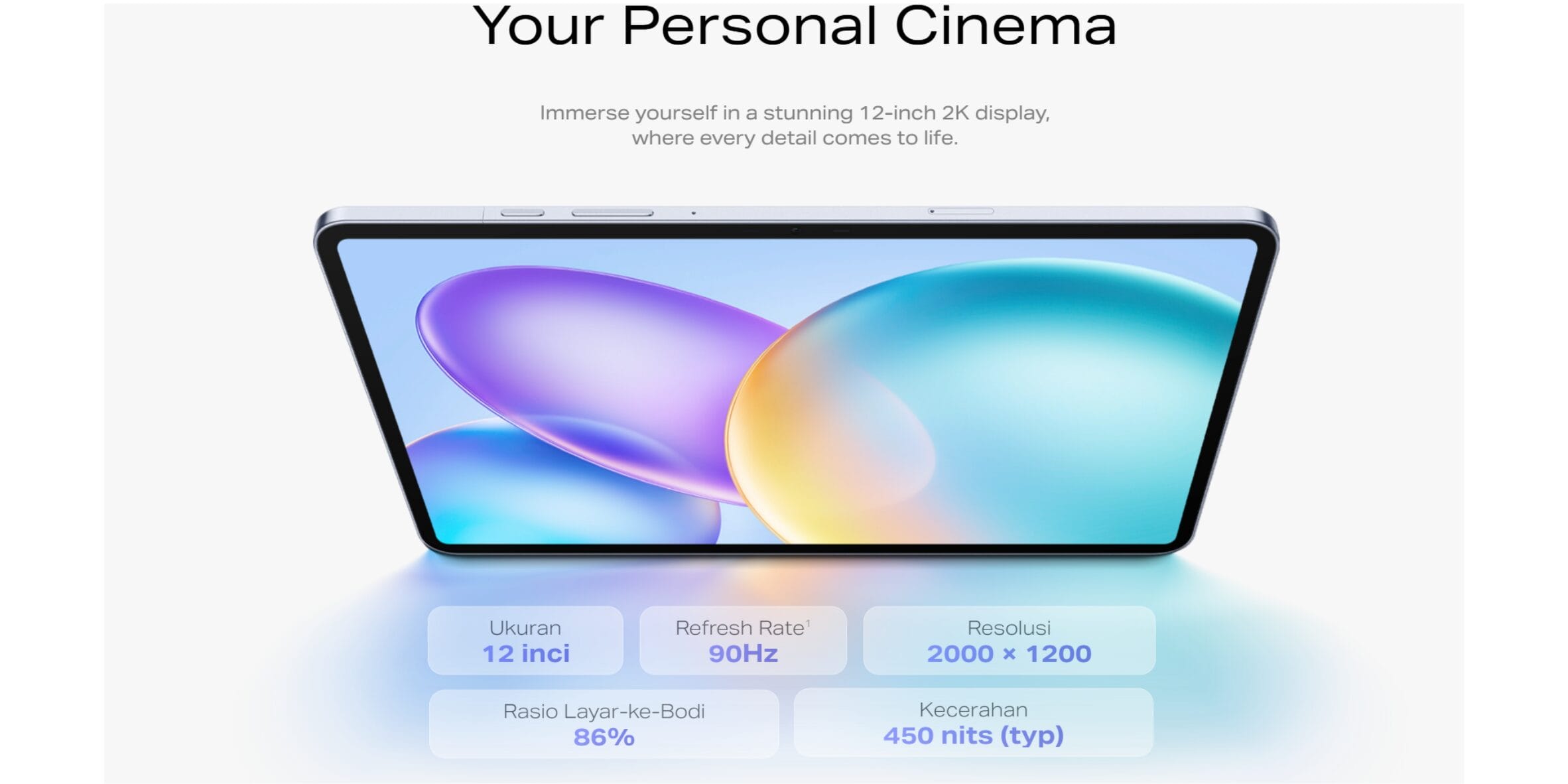 Bioskop Pribadi Anda Benamkan diri Anda dalam tampilan 2K 12 inci yang menakjubkan, di mana setiap detail menjadi hidup.