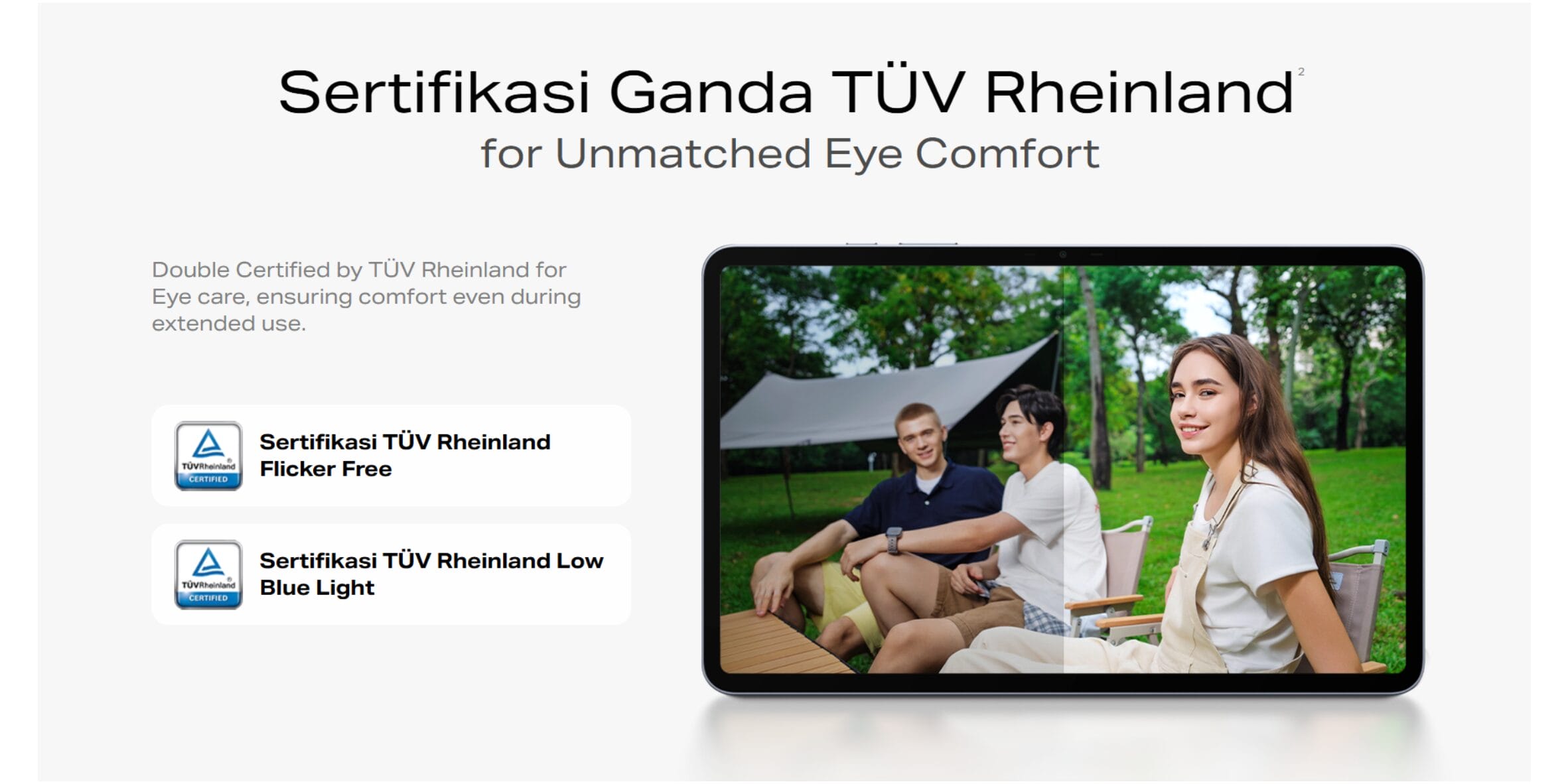 Tersertifikasi ganda oleh TÜV Rheinland untuk perawatan mata, menjamin kenyamanan bahkan selama penggunaan jangka panjang.