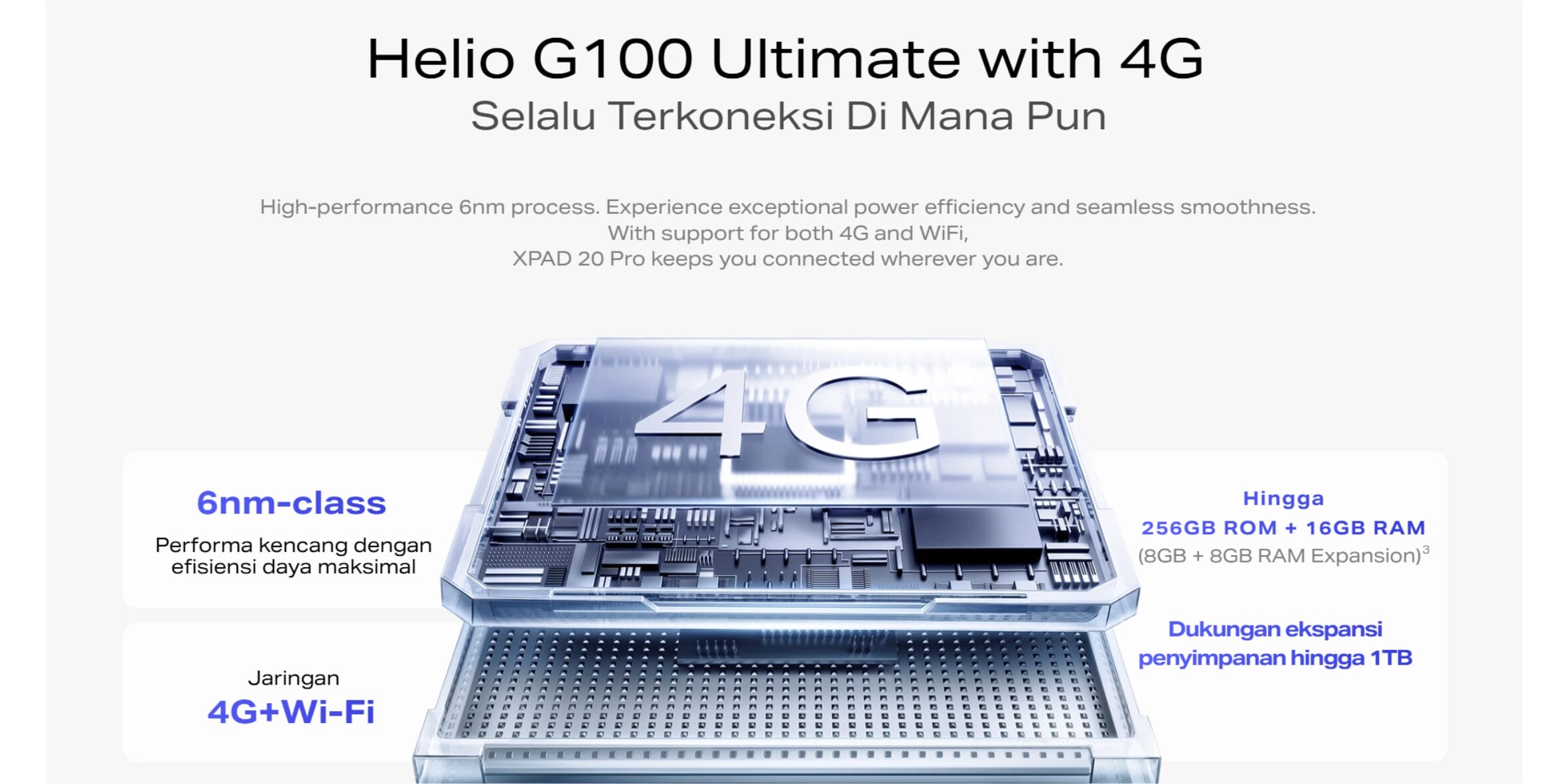 Proses 6nm berkinerja tinggi. Nikmati efisiensi daya yang luar biasa dan kelancaran tanpa hambatan. Dengan dukungan 4G dan WiFi, XPAD 20 Pro membuat Anda tetap terhubung di mana pun Anda berada.