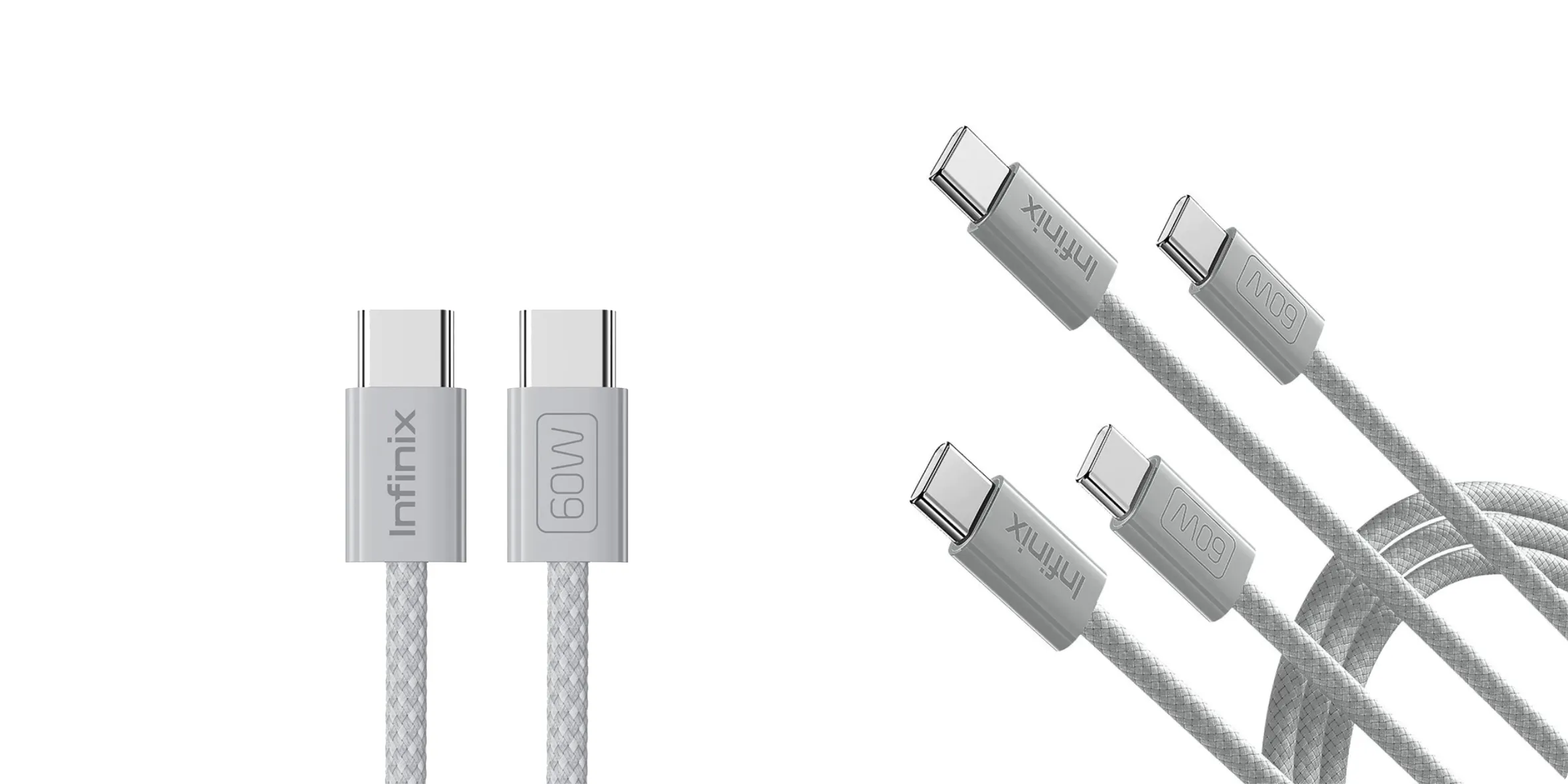 Infinix menyertakan kabel Type‑C to Type‑C 60 W (3 A) sebagai aksesoris resmi yang kompatibel dengan perangkat seri Infinix seperti Note 12 5G dan lainnya. Kabel model XDC33 ini memiliki panjang sekitar 1 meter, terbuat dari bahan TPE atau silikon lembut dengan struktur braided yang memastikan kelenturan dan daya tahan tinggi