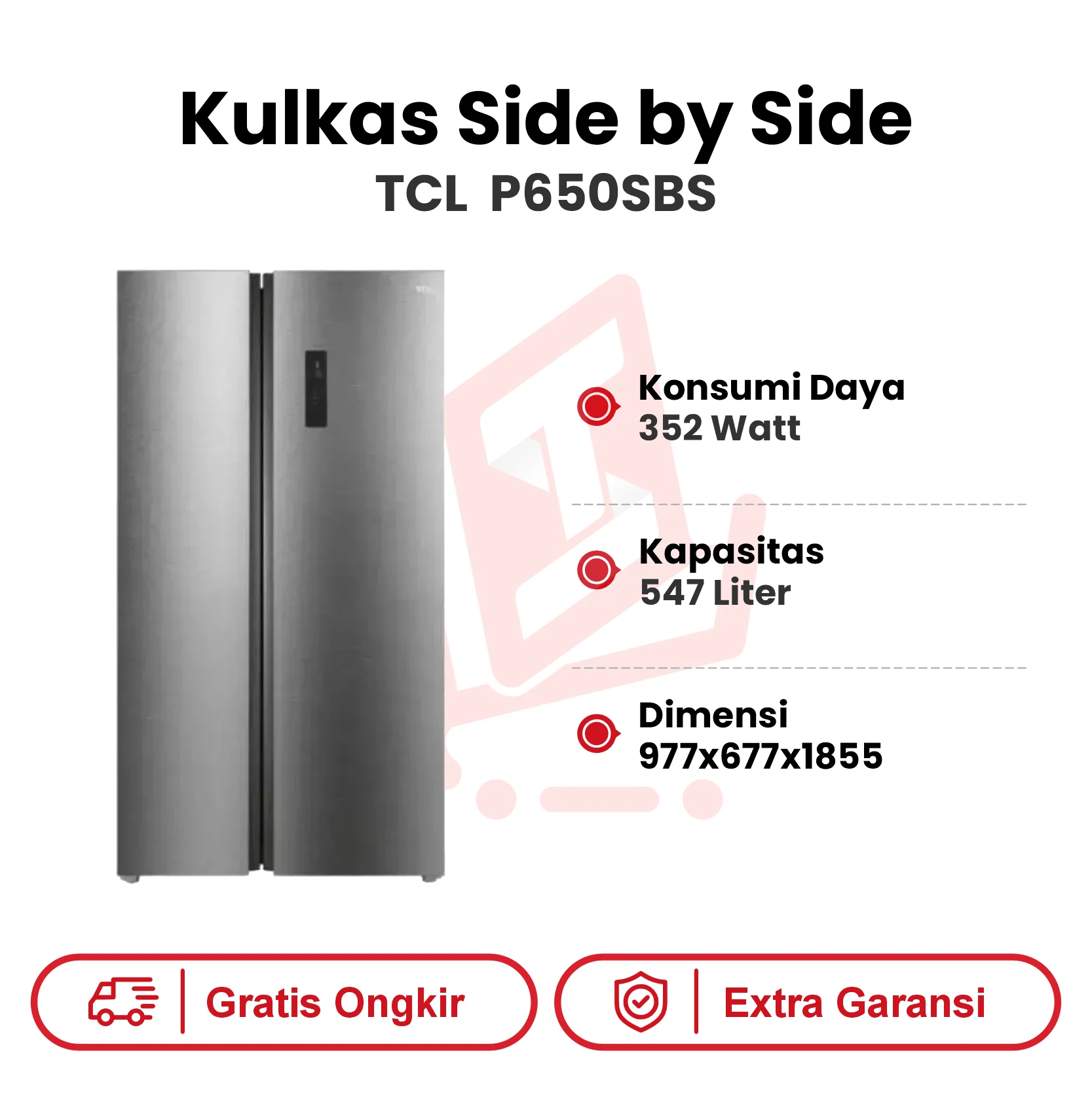 Deskripsi Produk: Kulkas Side by Side TCL P650SBS