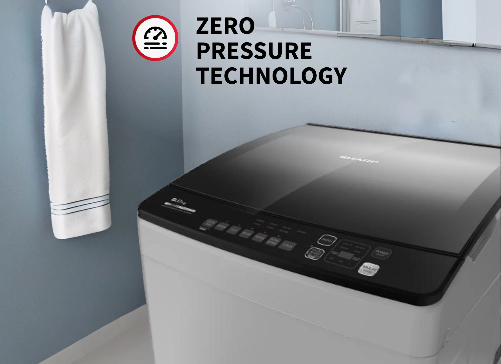 Mesin cuci ini dilengkapi dengan Zero Pressure Technology yang memungkinkan pencucian efektif meskipun tekanan air rendah, sehingga cocok dipakai di berbagai kondisi air rumah tangga. Fitur Water Saving Rinse menghemat konsumsi air hingga 30%, membantu mengurangi biaya dan penggunaan sumber daya air