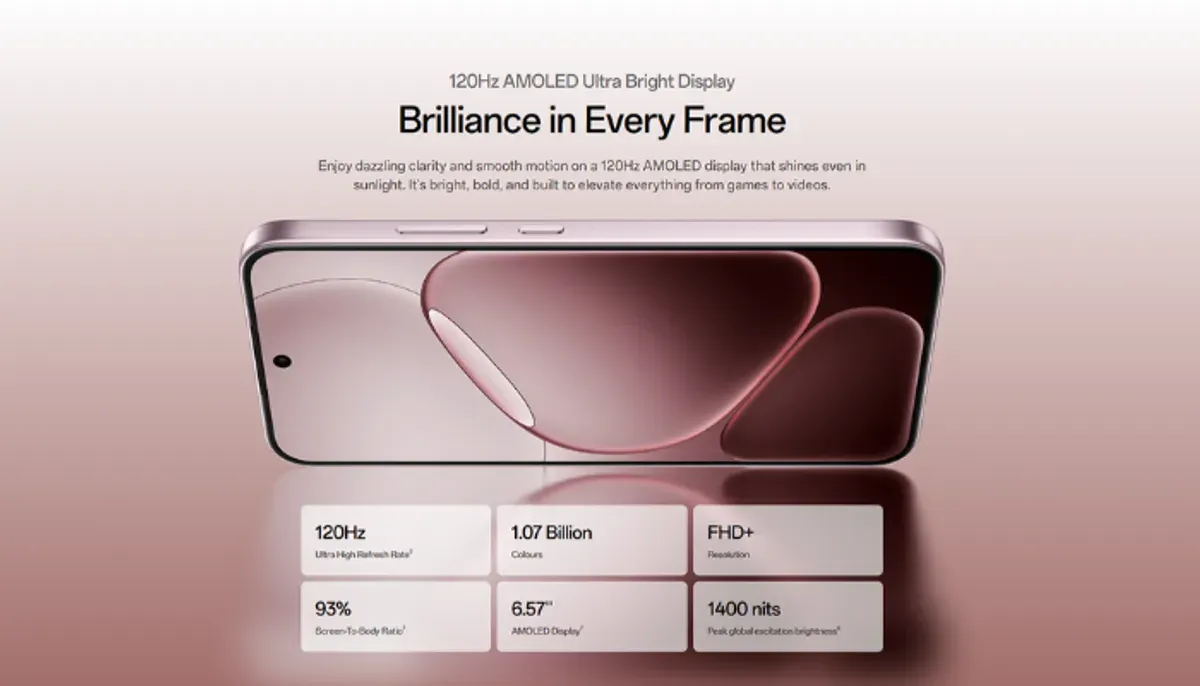 OPPO A6 Pro dibekali layar AMOLED berukuran 6.57 inci dengan refresh rate 120Hz, kecerahan maksimum hingga 1400 nits, dan dukungan warna 10-bit yang menghasilkan tampilan luar biasa tajam dan responsif, bahkan di bawah sinar matahari langsung. Lapisan proteksi AGC DT-Star D+ menjaga layar tetap aman dari goresan.