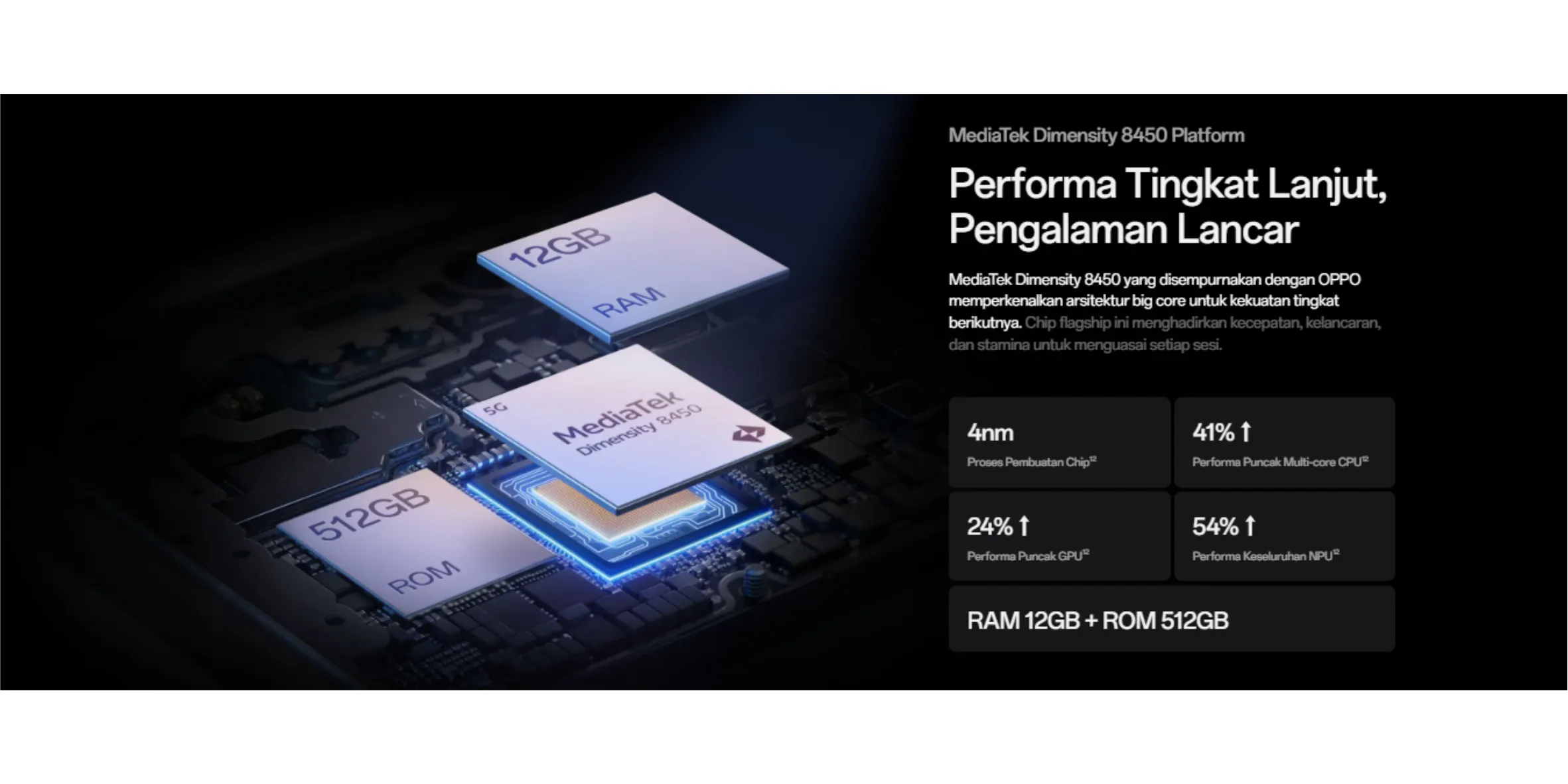 Chipset MediaTek Dimensity 8450 5G + RAM 12GB