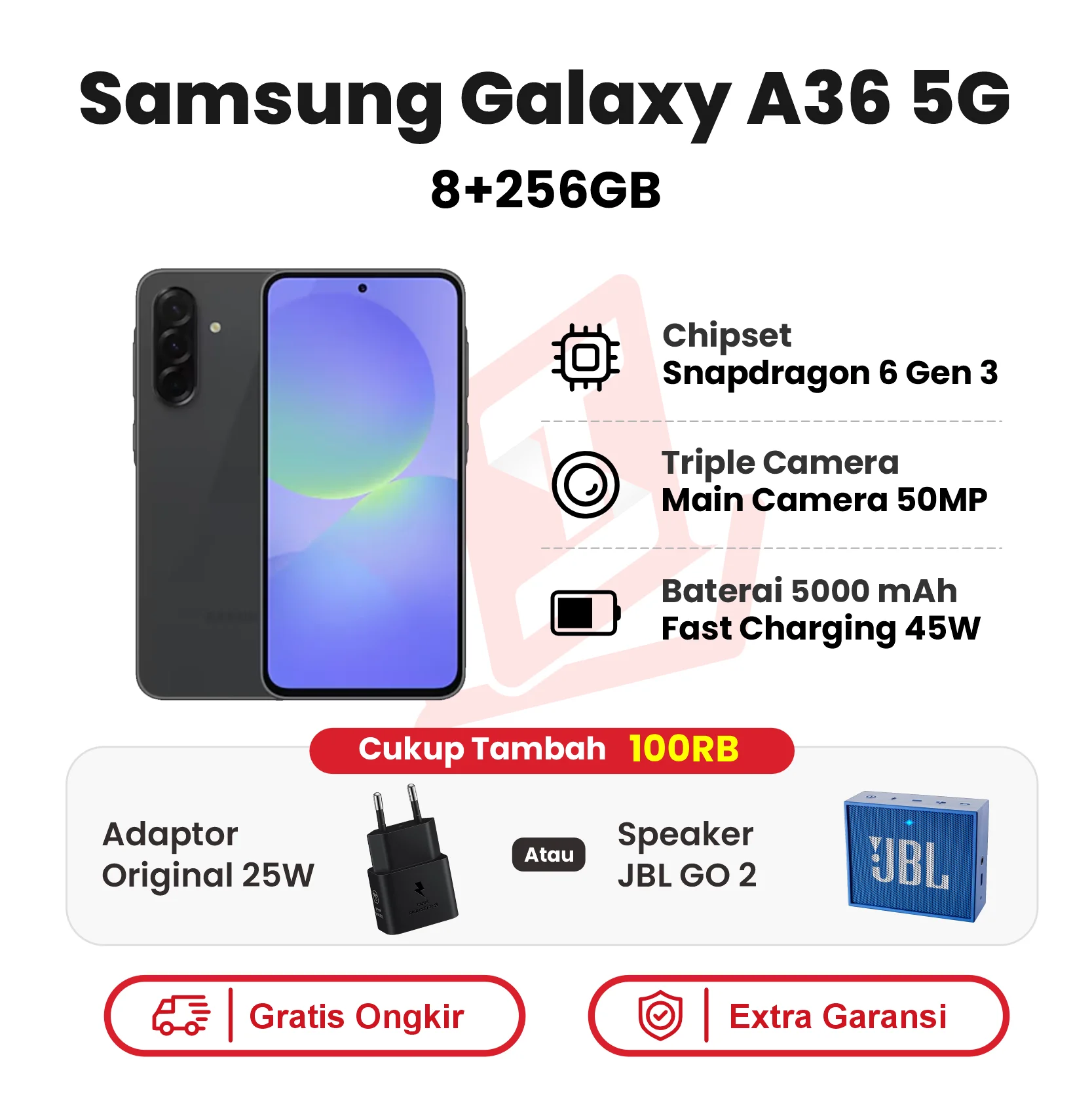 Daya tahan baterai menjadi salah satu keunggulan Galaxy A36. Dengan kapasitas 5000 mAh, pengguna dapat menikmati penggunaan perangkat sepanjang hari tanpa khawatir kehabisan daya. Teknologi pengisian cepat 45W memungkinkan pengisian hingga 66% dalam 30 menit dan mencapai 100% dalam 68 menit, meminimalkan waktu tunggu saat mengisi daya.