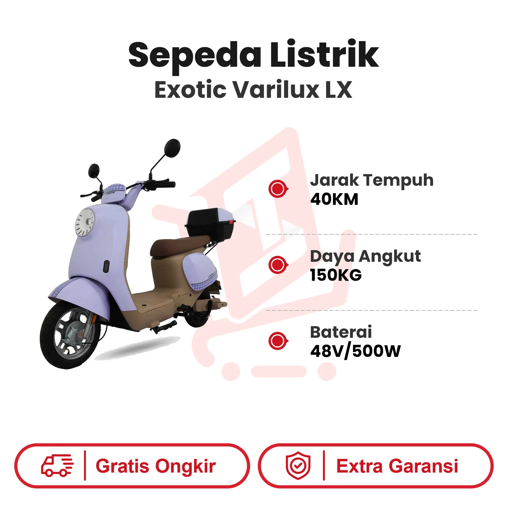 Nikmati pengalaman berkendara yang lebih modern dan efisien dengan Exotic Varilux LX – sepeda listrik bergaya masa kini dengan performa luar biasa!