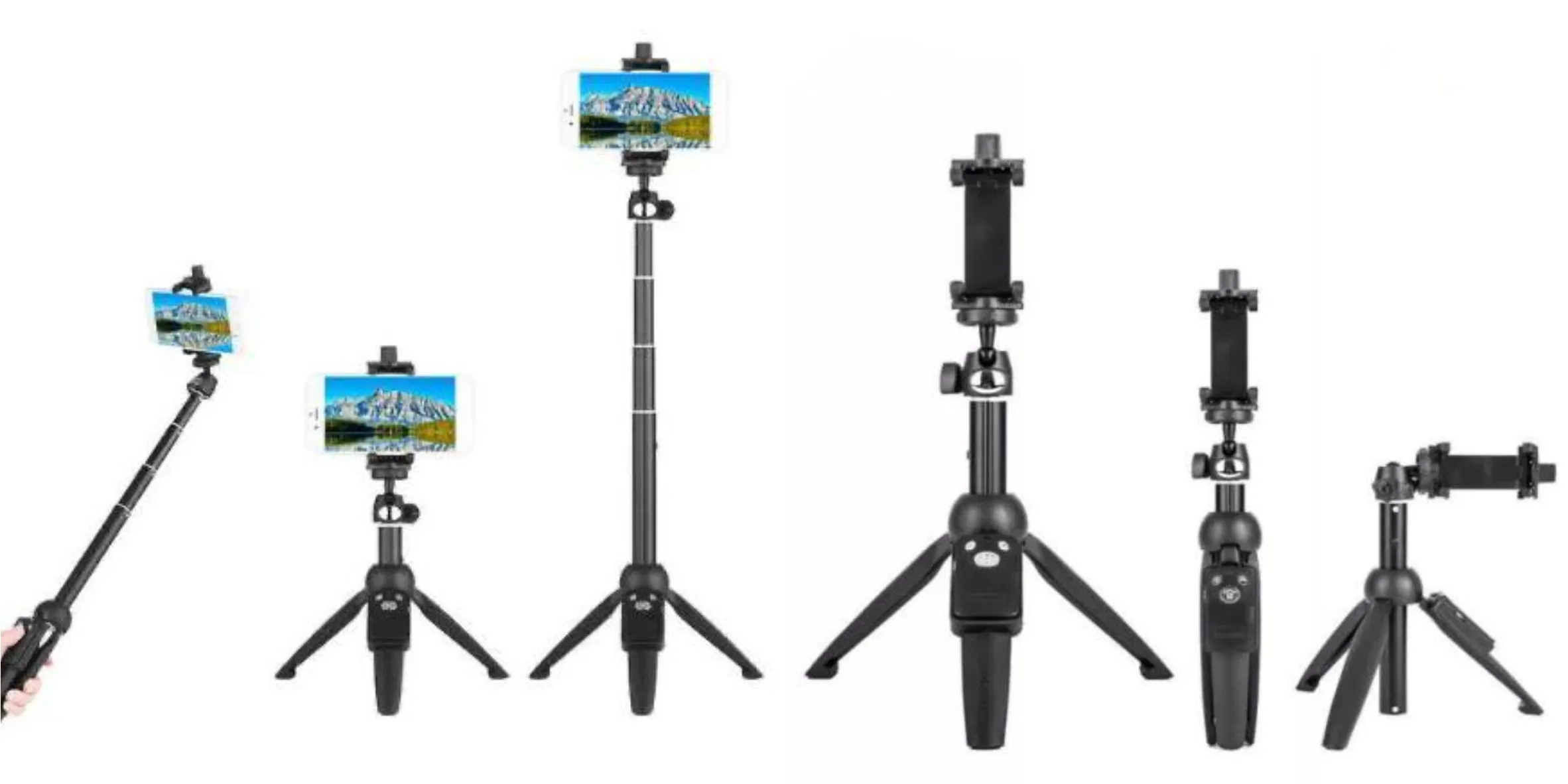 - 3-in-1 Multifungsi: Selfie stick, tripod meja, dan stand tinggi dalam satu alat.