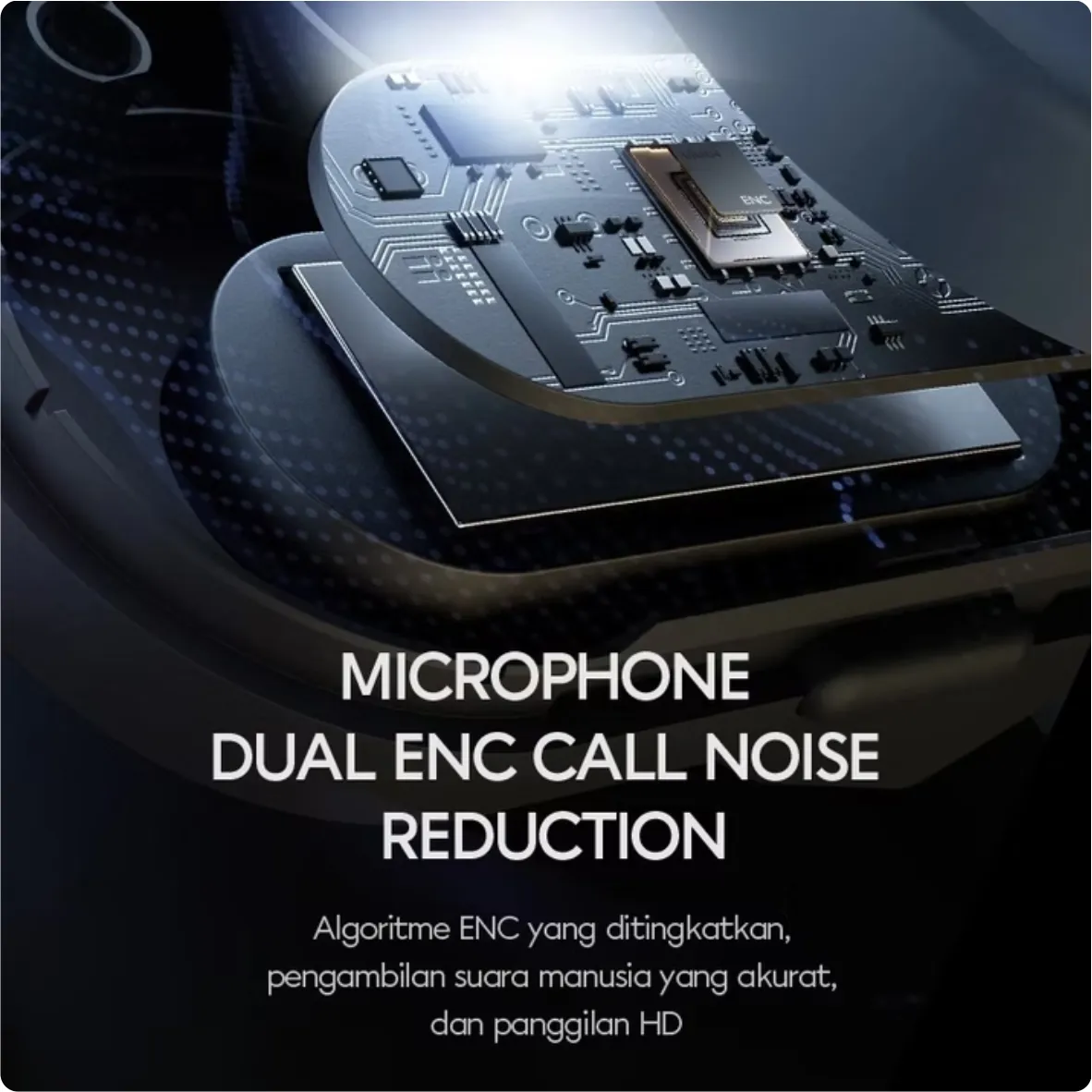 - Dual ENC (Environmental Noise Cancellation) — panggilan suara tetap jelas tanpa banyak gangguan suara sekitar.