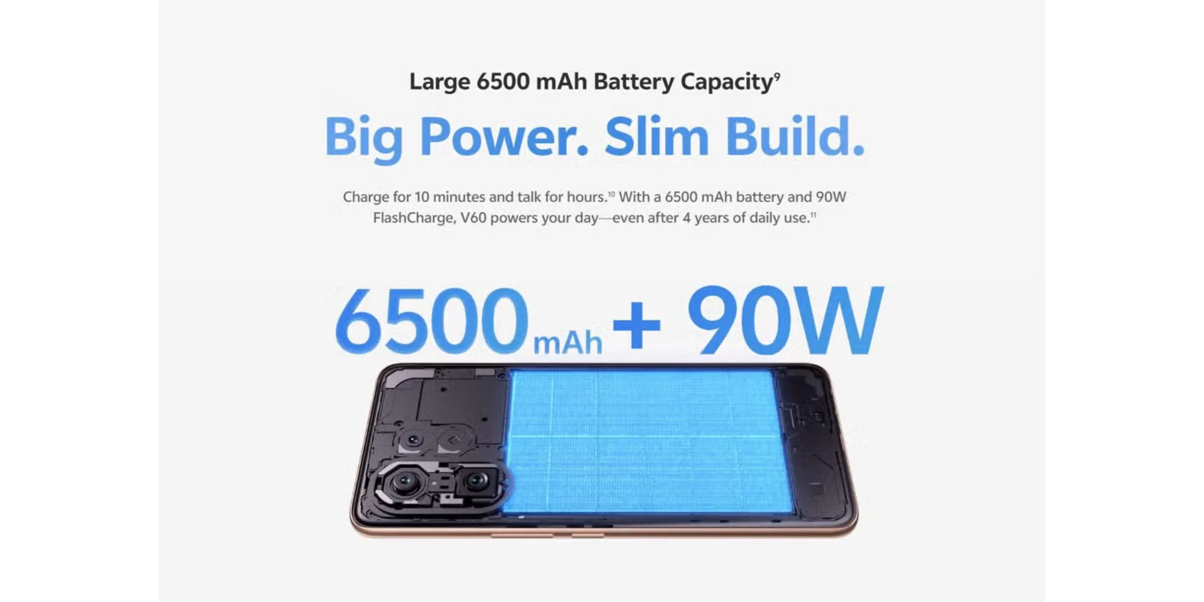 Kapasitas baterai besar 6500 mAh menjadi salah satu keunggulan utama Vivo V60 5G, mampu bertahan lebih lama untuk penggunaan intensif. Dukungan 90W fast charging (Power Delivery) membuat pengisian daya jauh lebih cepat, ditambah fitur reverse wired charging serta bypass charging yang menjaga performa baterai tetap optimal. Dengan kombinasi daya tahan luar biasa dan teknologi pengisian cepat, Vivo V60 5G siap menemani aktivitas seharian penuh tanpa khawatir kehabisan daya.
