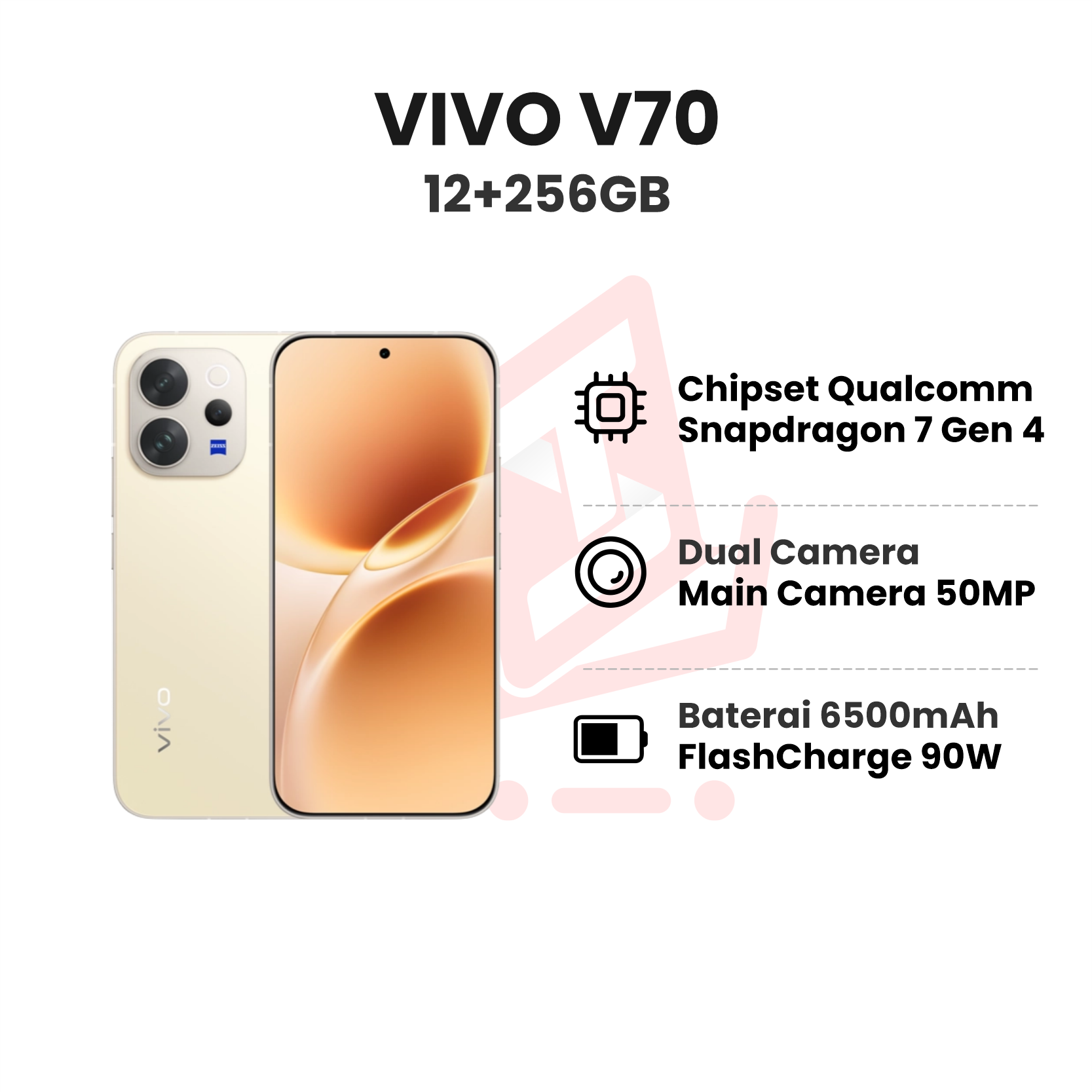 Vivo V70 5G adalah smartphone kelas atas dengan layar AMOLED canggung, chipset Snapdragon 7 Gen 4, baterai 6.500 mAh, dan pengisian cepat 90W FlashCharge. Dengan kamera utama 50 MP dari Zeiss, ponsel ini cocok untuk pengguna yang mengutamakan foto berkualitas tinggi, performa gaming, dan daya tahan baterai sepanjang hari.